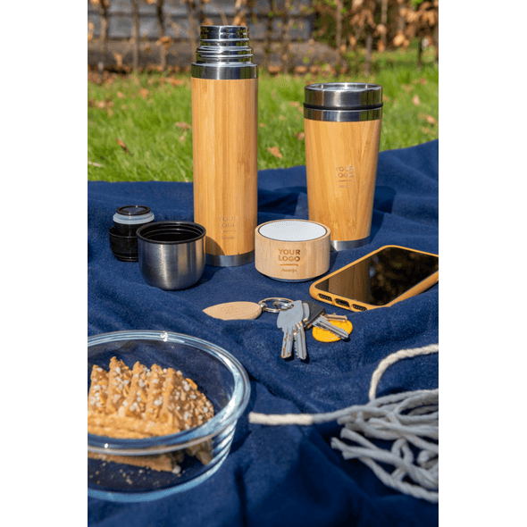 Doppelwandige Flasche aus Bambus und Edelstahl